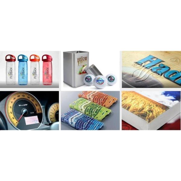 UV teknolojisi son derece esnektir ve çeşitli malzemelere baskı sağlar: metaller, cam, plastik, ahşap, deri.