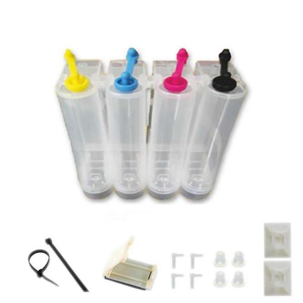 "Sürekli Mürekkep Besleme Tankı" kolay dolum kartuşlarına ilave edilerek devamlı mürekkep besleme sistemi oluşturulur. Tankların iletim hortumları kartuşların tıpayla örtülmüş deliklerine takılır.Tüm kolay dolum kartuşlarının hava delikleri standart boydadır ve tanklarla uyumludur. NOT: Uygulanacak yazıcılarda püskürtme kafasına ya da kartuşlara ait hareket alanının hortum geçişine uygun olması gerekmektedir. Bazı yazıcılarda hortumların geçişini rahatlatmak için müdahale gerekebilir. |
